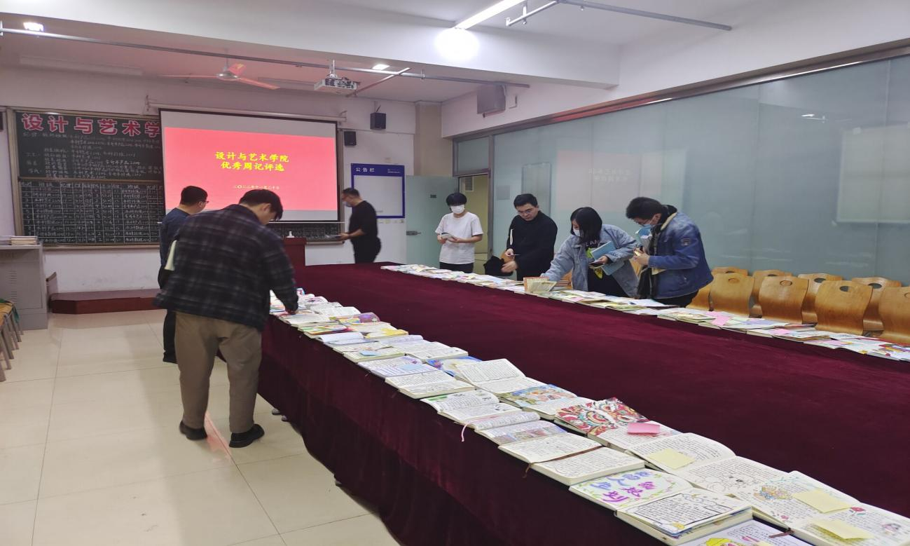 为进一步加强校本特色项目,彰显我院学生良好的学习风貌,养成学生记课堂笔记的习惯,设计与艺术学院于11月6日在22好了308会议室,开展“优秀课堂笔记评选”活动,本次优秀课堂笔记活动评选由郑帅科长、学管干事侯永鹏老师及学院部分辅导员老师出席并担任评委。