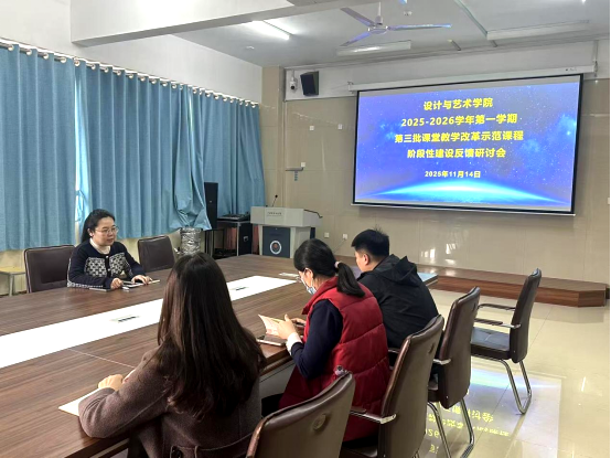 2025年11月14日,设计与艺术学院召开第三批教学改革示范课阶段性建设反馈研讨会。会议由副院长李清主持,第三批教学改革示范课建设负责人参会,核心议题为推进示范课高质量建设,明确阶段性任务与验收标准。