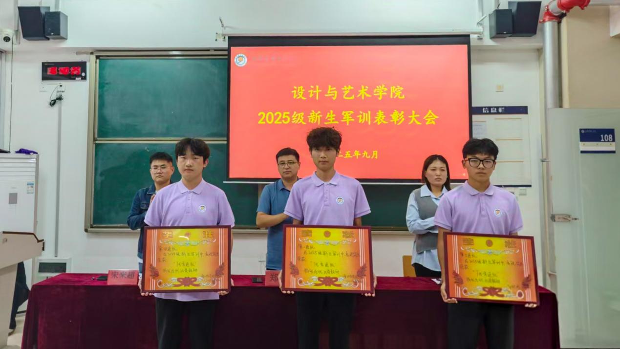 以汗水浇灌青春担当,用坚持书写青年风采。为总结军训成效、表彰先进、传承军训精神,9月28日,设计与艺术学院在4号教学楼108室召开2025级新生军训表彰大会。学院学生管理科科长郑帅、后备干部李艳艳、学管干事宋来超、军训教官团队、2025级新生辅导员及全体新生代表参会。会议由宋来超主持。