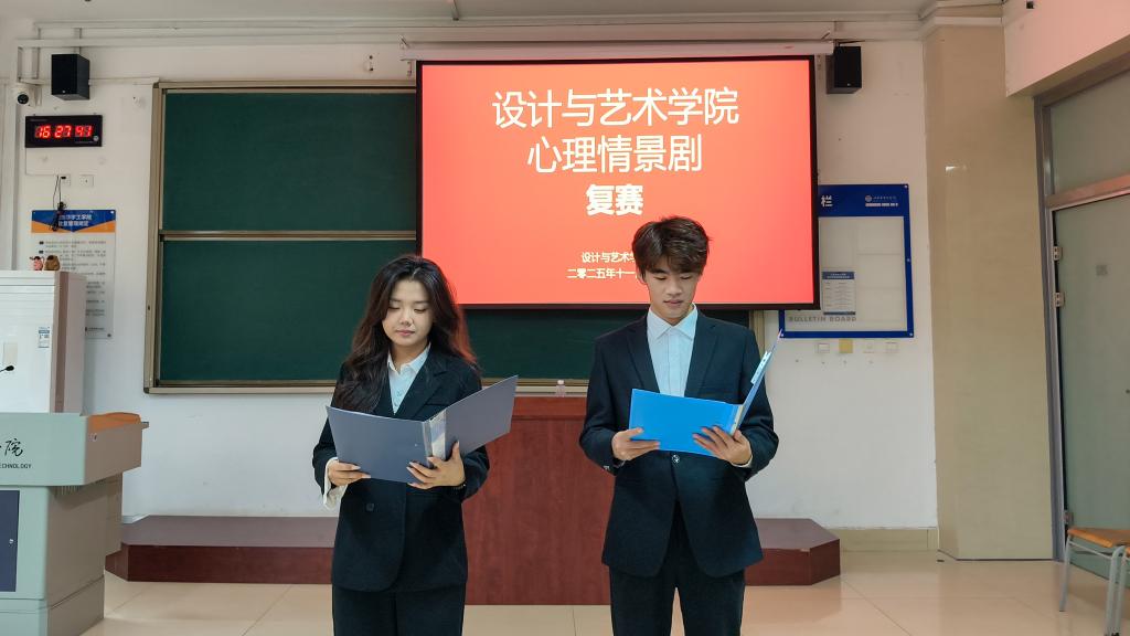 为进一步增强大学生心理健康安全教育工作,提高大学生心理危机防控工作的实效性与针对性,提升大学生心理健康水平,给学生提供一个自我表达和情感释放的平台。2025年11月6日,设计与艺术学院在4号楼202教室成功举办心理情景剧活动。本次活动由学院辅导员老师代表出席评委。